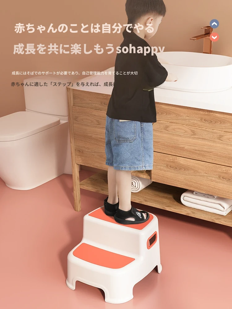 子供用洗面台踏み台 - お風呂場での手洗いや歯磨きに最適!滑り止め付きで安全、赤ちゃんも安心して使えるステップスツール。成長をサポートする必需品!
